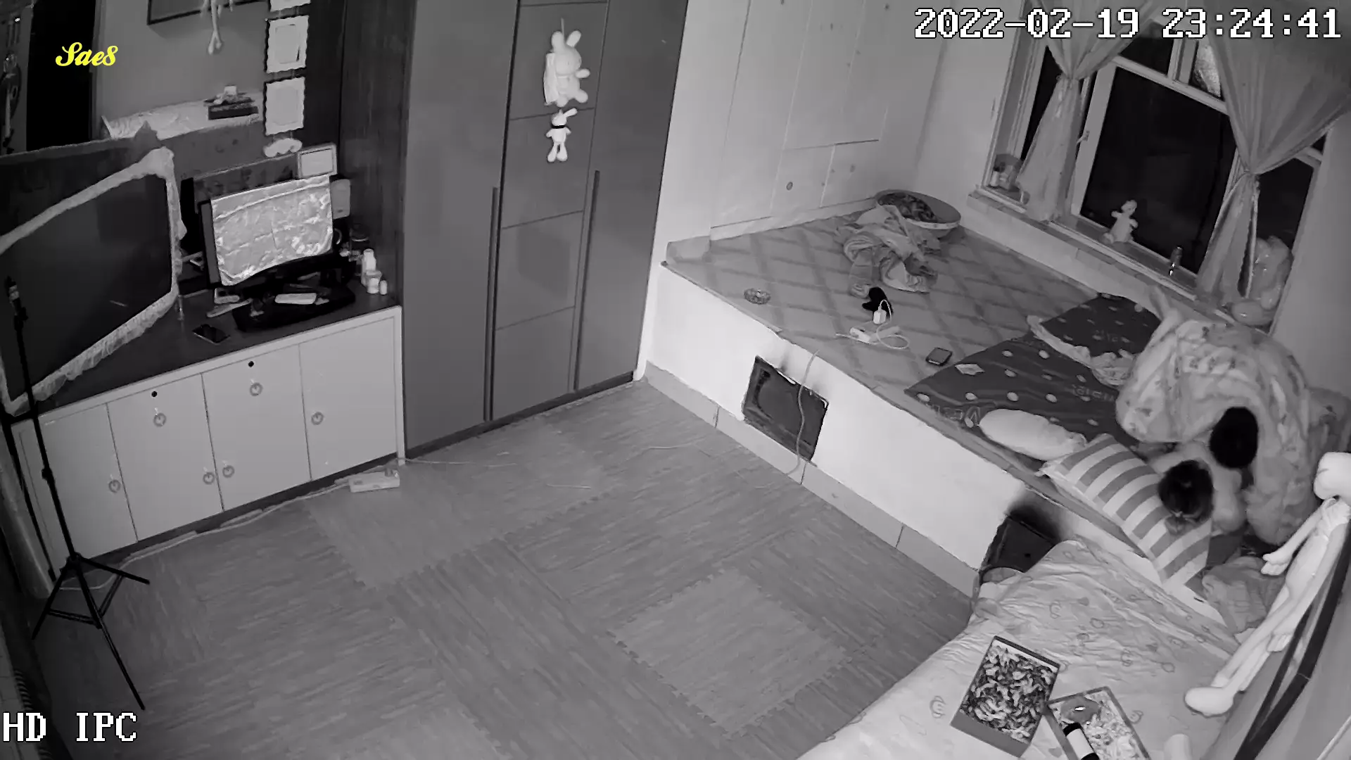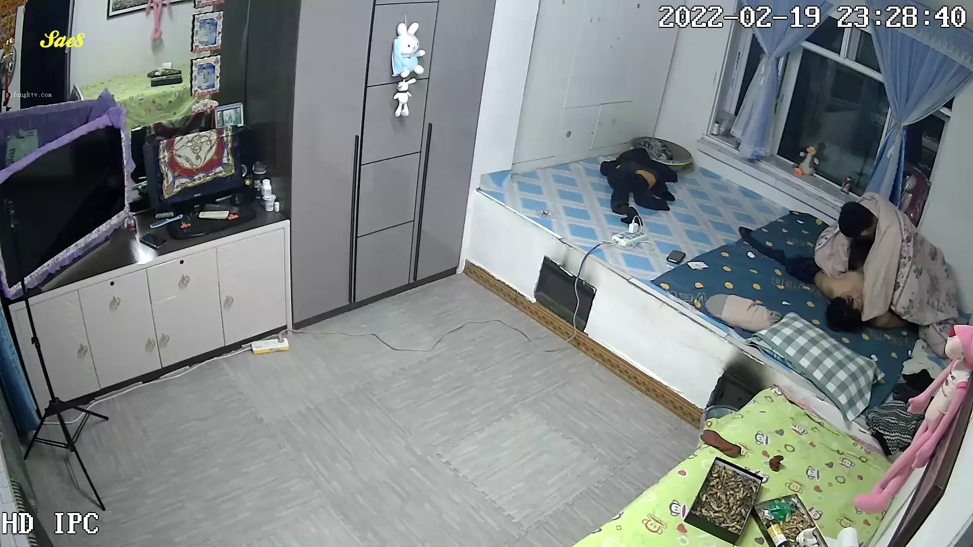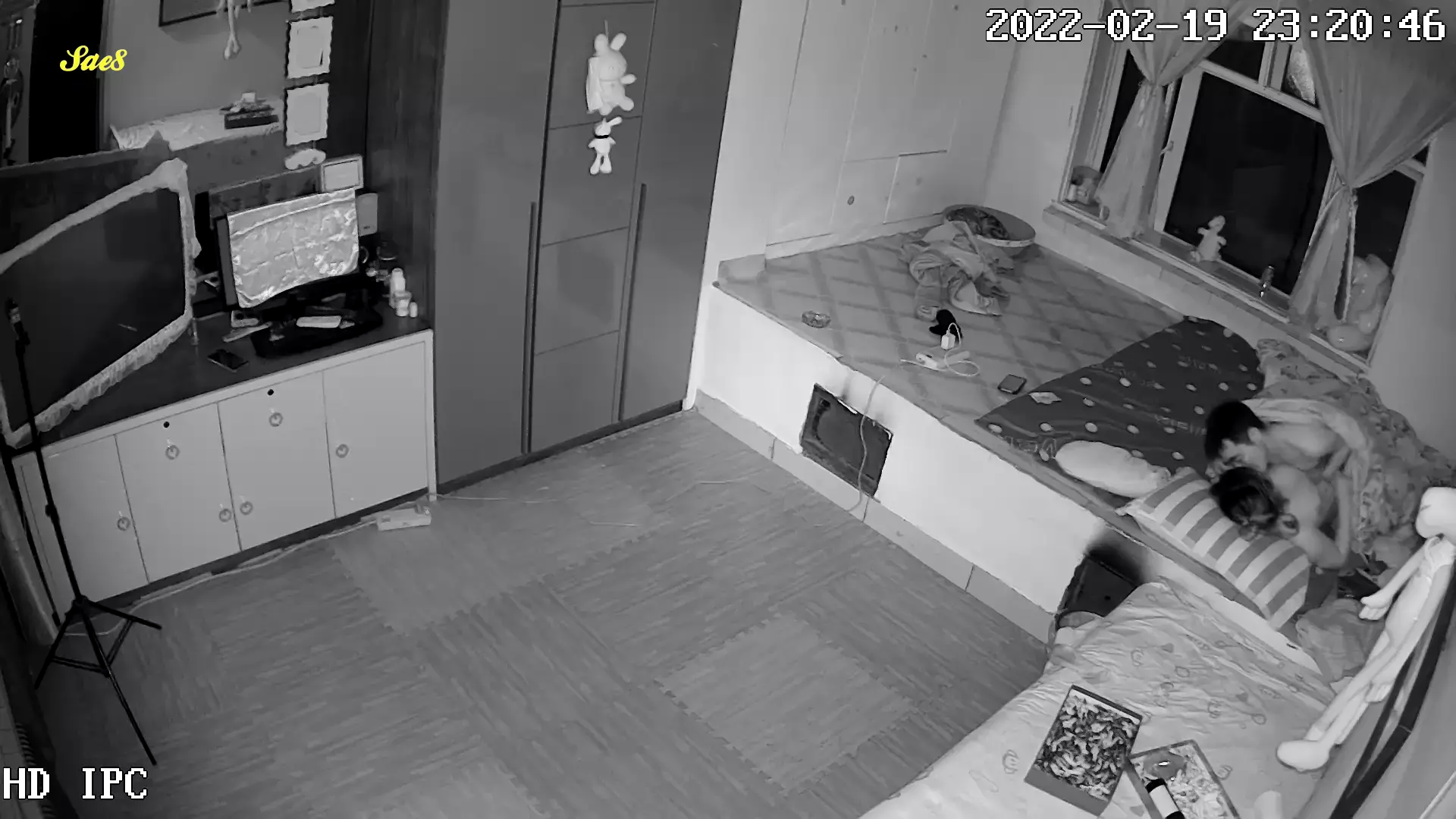 黑客破解家庭网络摄像头偷拍睡东北大炕年轻夫妻晚上做爱发现忘记关摄像头了赶紧用毛巾去盖。